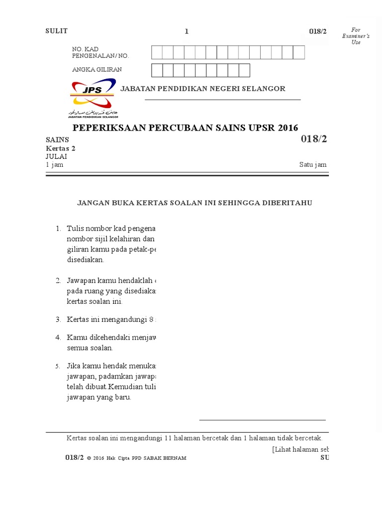 Cover Sains Kertas 2 Upsr 2016 Pdf